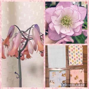久しぶりの投稿です🎶 今家で咲いているカランコエ リンリン❣️可愛いです😍 右上は欲しいクリスマスローズ (花屋さんにて) 少しお高めだったのでおあずけ🐶 右下は まだまだ手に入りにくい マスクをガーゼマスクでつくりましたぁ😷 子供用、大人用にたぁくさん作ったわよ〜😋