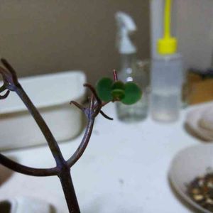 カランコエ、リンリン。花は終わりましたが、少し葉が出てきて。可愛いので、しばらく水差ししてみます。