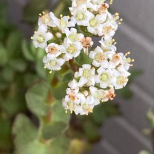 おはようございます😃 ビバーナムティヌスがとうとう咲き始めました。 夏か秋ぐらいからずっと蕾で、蕾の期間が長く開花は短い。 日当たりもあまり良くなく西陽が当たる所に植えてあるけど、剪定もせずきれいな形にまとまっています。 去年花を切った所には、今年は花は付いていない。でも上へ上へと蕾をたくさん付けて伸びて行っています😊