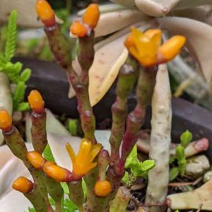 おかかさんのー ルリ鳥🌵が 咲いたよーー❤️ 可愛いお花🧡 下は あおいねこさんの サルコイグサ。サルコイアシ⁉️ 大きくなったから カットして 別の鉢に 植えたら 蕾沢山付きだして 咲いたよーー♬ …て 事は 親株の根が パンパンだから あまり咲かないのかな 土を 変えてみよう✨