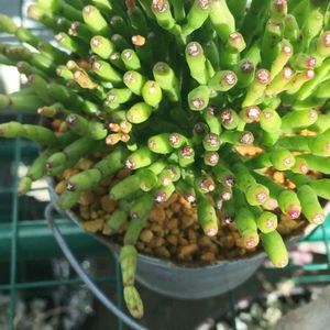うちのリプサスさん シワシワになってからの水遣りばかりですが、我ながらいい形に育ってくれてます😆 サボテン科リプサス属 リプサリス・ハティオラ・サリコルニオイデス(Rhipsalis hatiora salicornioides) 別名 猿恋葦(サルコイアシ)