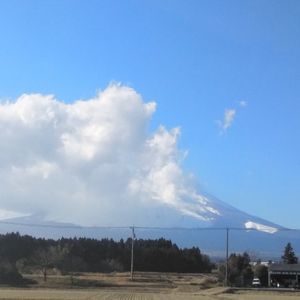 誰かが刷毛で描いたような雲と富士山🗻 昨日は富士山では雪か、みぞれだったようです☔️ (2022.1.27 10:50 足柄千保より)