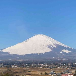 久しぶりに雪が積もって、富士山らしくなりました🗻 小富士もしっかり見えてます 一合目まで、雪が降って麓まで白くなっています‼️ (2021.2.25 8:15 東名高速道路側道より)
