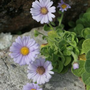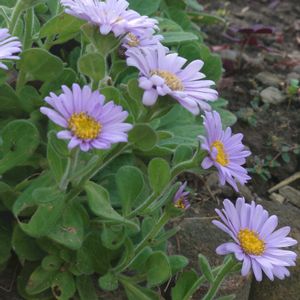 ①②③野紺菊 ノコンギク キク科 シオン属 分布 本州 四国 九州 日本固有種 花 期 8~11月 多年草 ・地下茎が横に広がって増える。 ・茎 叢生し、上向きの毛が 生え、よく分枝する ・葉 両面に短毛が密生し、 ざらつく。 形や鋸歯は変化が多い ・頭花 散房状につく。 直径約2.5㎝。舌状花 は淡青紫色。白に近い ことも多い。 ・高 さ 50~100㎝ ユカリさんの 🏷️2025秋の十草 5種目 参加 ダルマギク キク科 シオン属 分布 島根県以西の本州 九州北部(隠岐、対馬な どの沿海島嶼) 在来種 花期 10〜11月 多年草 和名は海岸の岩の上に咲く様子がダルマが座っているように見えるところからつけられたとか葉がまるいのをダルマにたとえたなどの由来がある。 3種目 ダルマギク