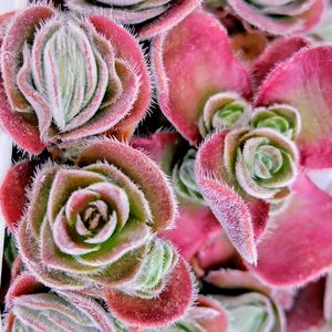 もっけもけ濃いピンク可愛い クラッスラ・トメントーサさん😻🩷❤️🤍💚 ここ数年 2月から暖かくなったり…で 多肉ちゃん達が早めにグリーン化しとりましたが 今年は涼しい日が多く カラフルなコが多いです😺 センペルお嬢様方もゆっくりと冬服からお着替え中です🐱 外壁工事に入る為 せっかくの久々の“普通の春”が台無しですが仕方が御座いませんね🙀💨 今 庭(通路🙇💦)を片付けていて 相当数が室内に入るので 徒長グリーンになりそで怖い😿