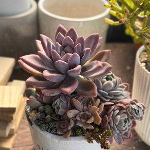 少しスリムな エケベリア・ジロ×ヒューミリスさん 花芽ちゃん付き😻💜🤍 お水を与えてふっくらして気温が上がって来ると 良く魅るタイプのエケさんに戻っちゃうので 今の内に🤳✨