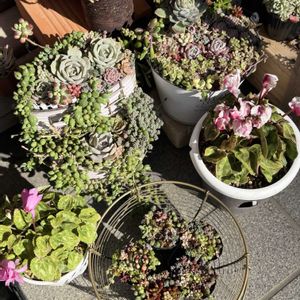 可愛くなって参りました😺 センペルビウム・ルビーハートさん😻❤️🤍 外壁塗装に向けて庭(通路🙇)を片付けてますが お嬢様方がそれはそれは魅目麗しく御成長され 魅惚れちゃって一向に進まず…😺💧