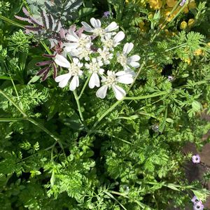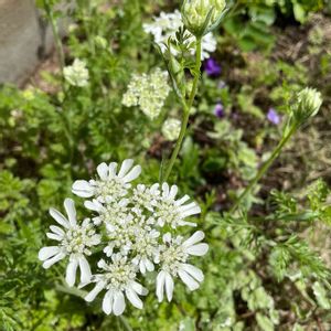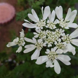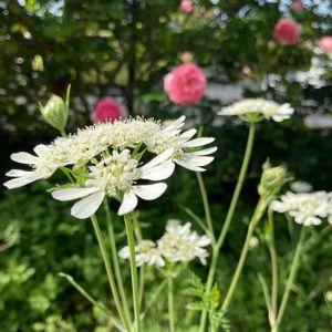 この白い花の名前教えてください。 「オルレア ホワイトレース」 別名 オルレア・グランドフローラ ゆうさん、ビタミンR1さんに教えて頂きました。