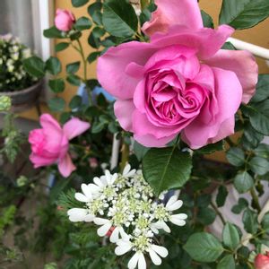 おはようございます😊 ローズ・ポンパドゥール🌹 が開き始めました。 先日の雨でまわりの花弁が少し傷んでいますが、きれいなピンク色です。 オルレアとのコラボ楽しみにしていたのですが、オルレアが先にどんどん大きくなって、ポンパさんが隠れてしまったので、 オルレアさん、だいぶ✂️させていただき ました。ごめんね💧 5月もよろしくお願いします(*´꒳`*)♡