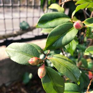 香り椿(港の曙)との記憶😅 港の春かな?どちらか忘れてしまいました 今年は少し成長して沢山花が咲きそうです☺️