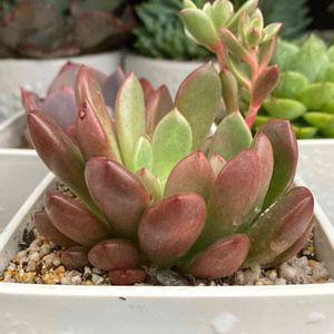 名無しで近所のスーパーで150円で売られてた子😊 ピンクルルビーかな⁉️ デカいし、赤ちゃんも足元にいた❣️ ちっちゃなピンクルルビーしかもってないから、デカ目のピンクルルビーGET出来て嬉しい😆♫ 黒ポットから、白の鉢に植え替えただけで見違えるようにキレイになった…ような気がする🤣 お迎えした時は葉が広がりすぎててちょっと残念なお姿だったからね💧 大事に育てますよ〜❤️