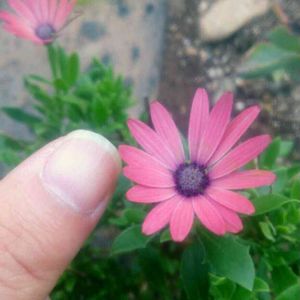 寄せ植えから花壇へおろした オステオちゃん♡ また咲き始めてくれた〜🐝⋆︎*゚∗ 虫食い葉っぱもキレイに復活してきた☆ いつまで咲いてくれるかな🎵 親指サイズで愛おしいー«٩(*´ω`*)۶»