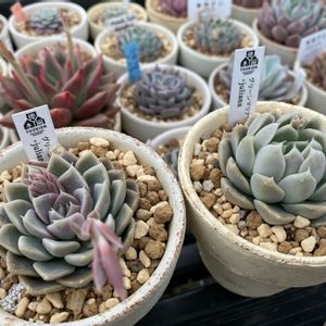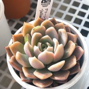 #グリーンマリアxユリアナ 優木園さんの多肉です。 ' こういう淡いグレーがお好みです😍 ' 葉の形といい、いいですな(*´ω`*) ' 今日は思ったより雨やしね振らなかったから、明日が本番かな?☔ ' #多肉植物 #エケベリア #グリーンマリア #ユリアナ #succulent #echeveria #k29会 #兵庫多肉