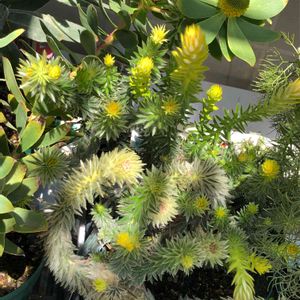 プロテア ピクシー💕 今回は、今現在は軒下ウッドデッキに置いていて不織布グルグルとアルミシートを被せて対策してます💦 昨日から気温が下がり寒波との事😰 毎日不織布外して太陽さんこんにちは😅とお顔見てます。毎日大変だけどビニ温室も毎日温度計見ないとあっという間に高温になるので、とっても大変だけど、植物が元気だと安心するので〜🤭💕 2枚目以降は窓辺の植物💕 グレヴィレア シルビア、夏より花が大きくなってる🤭成長してるのかな😅 セルリア プリティピンクとフィリカのモフモフですをとってもいやされます🤭💖