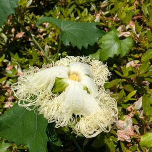 キカラスウリ💕 昨夕のツボミが夜開いて、今日10時半にはこんな感じ〜🤗👍️ 直径3センチくらい! 朝にはもっと開いてたと思うけど、この暑さで閉じるのが早いかなあ😅 今日は風がビュービュー強くて、暑さが紛れるけど…暑いよ〜🔥 皆様ご用心! 気をつけてお過ごしください💕 2025.6.22