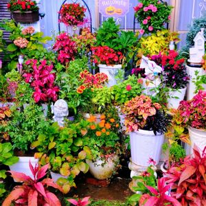 ❶暖色系エリアの植物達🍂 手前の、こぼれ種から育ったレッドクリフが日々巨大化して栄養系コリウスより大きく迫力満点です🌿 ❷普通のペンタスと観賞用トウガラシブラックパールの実が赤くなって来ました☺️ ❸秋明菊とフジバカマ、ルエリアパープルシャワーの共演🌿 ❹木立ち性の薔薇ジュリアチャイルドが咲いて来ました🌹 ❺ラナンキュラス ラックス ティーバーとヘラが芽吹いて来たので水やり開始🌱 もう少し葉が出て来たら鉢増しする予定です🪴