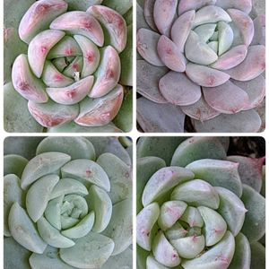 ほんのり色付いて💕 去年ダメにしちゃったブルーサプライズだけど おかわりダイソー産2つ 1つの中心の葉の向きおかしいけど あるあるなのかな? ピュアラブは名前買い こんな姿になるとは知らなかったよ😆 まだ小苗 先が楽しみ〜🎶 葉挿しっ子も良い色😘 ピンクプリティーは 下葉が枯れ込んだけどいい感じ❣️