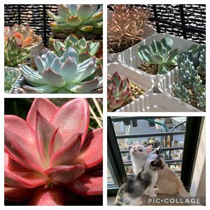 みちのすけさんのニャンニャン祭りに 参加させて下さいませ💕 暑苦しくなってきた寄せ植え 我が家のジジファミリー♬と 猫爪サボテン🌵🐱 ねこねこ食パン (トロピカルチョコバナナ味) 見つけました😁