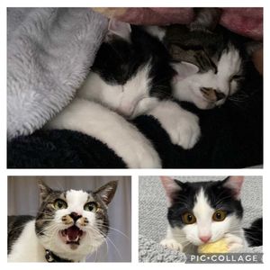 3月の🌸 ニャンニャン祭りだよ🎉🎶 わが家のクリローさんと ニャンズのコラージュです ↗️しろにゃん せんまりおんぶで うれヨダが出てました🤣 ↙️ソラは 毛布でまったり 薄目で二重まぶたになってます👀
