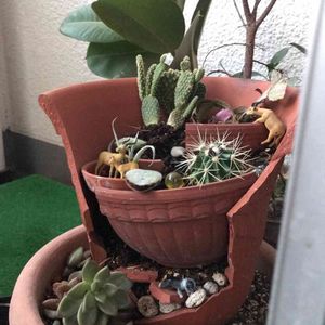 👋😃お天気が良いので鉢植え代え👕💦割れた鉢の材料いかがでしょうか?🙄素敵な物語が🤭出来そうです🤭😆🎶✨