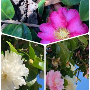 こんにちは👋😃近所の方のサザンカ色々と一本の木から紅白に八重ポイ🤍もうかなり散ったり茶になってるのもありますが