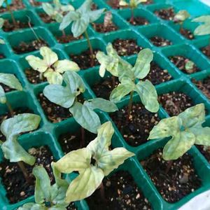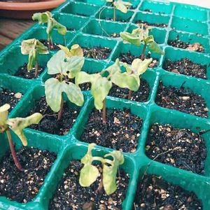 先日お譲り頂いて、水につけて置いた種を蒔いたらすぐに芽が出てきました。 ただ…なんか連勤明けの社畜みたいな佇まい。 くたっとしてるし色が薄い??変色?焼けてる?? ううう…大丈夫かな(´・ω・`)