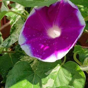つばめ朝顔🎵 斑入り葉が爽やか(*´-`)💕 種を頂いて初開花💓