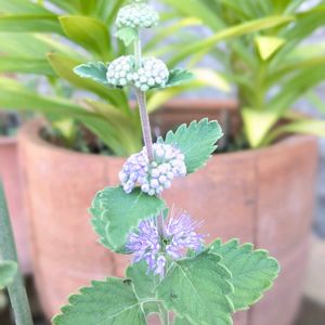 ピンクのダンギクがとてもかわいい💕数年前にお友だちにもらったもので、毎年出るけどひと枝かふた枝。 実は後ろの青い西洋フジバカマと同じ鉢にいます🪴 なぜか毎年こうして曲がって咲いてくるけど、これはこれで面白い。 斑入りの葉はミズヒキ。 こちらは前に置いた別鉢です。 でもトータルで良い雰囲気✨✨ お花って植物って、自然に自分でステキを作ってくれるのですよね😊