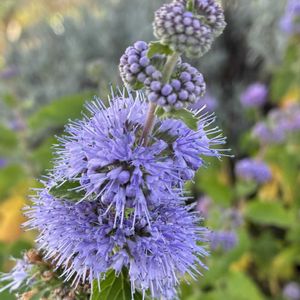 カリオプテリス・パビリオン(ダンギク) 去年の秋に寄せ植えに使ったダンギクを おひとり様にして育てています💞 1年経って思いのほか大きくなり 次々と可愛いお花が咲き出しました🍡🍡🍡