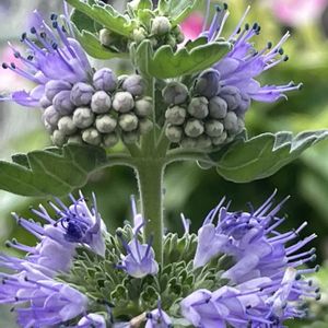 9月26日 今日のお花 🩷🌿💜🌿ダンギク🌿💜🌿🩷 別名カリオプテリス、ランギク 開花期 8〜10月 花序径 3〜5cm、 草丈 30〜70cm 葉や茎は灰白色を帯びる。茎の上部の葉のつけ根に集まって、茎を囲むように開き、下から上の段に順々に咲いていくので、ダンギクといいます。花に芳香があり、雄しべと雌しべがまっすぐに突き出ています。 🏷️愛しの紫 1️⃣2️⃣2025.10月撮影 3️⃣2024.9月撮影 4️⃣千里万博山野草展より