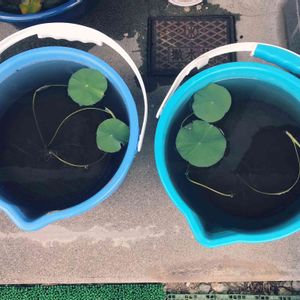 ついに蓮を植え替え🌱 明日からいっぱい太陽の光浴びてね☀️ 蓮鉢は来月買うから少しバケツで我慢して😭