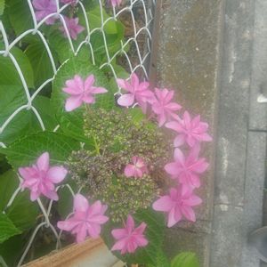 ガクアジサイ ダンスパーティー色付く💕 2年生のガクアジサイダンスパーティーに今年は、5つの花がついた。 ブルー系の花だが、色付き始めはほんのり茜さす🩷