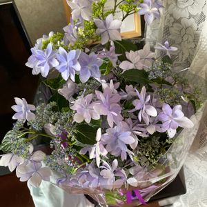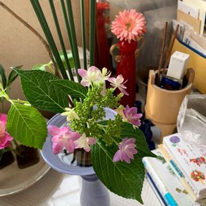 職場からもらったアジサイ。調べたら、「ダンスパーティー」のよう。 見た目が気に入ってたら、名前なんてどうでもいいよ〜と職場の人から言われたけど、調べちゃった♡人気者の種類だったみたいで、納得。