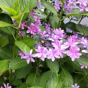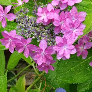 🩷ピンクの紫陽花🩷 3種類 ①マジカルマーブルピンク ②.③ダンスパーティー 八重のガクアジサイ ④.⑤スズカパール 時々 花びらの一部が濃ピンク🩷になります 去年は半々の濃淡になり面白かったです‼︎ どれも鉢植えです アルカリ性になる様に、植え替え時に石灰を混ぜました。 石灰入れ過ぎたかなぁ⁈ 濃い🩷になりました😅 午後から☔️降りだしました。 そろそろ梅雨入りでしょうね☔️