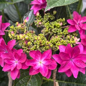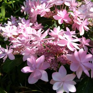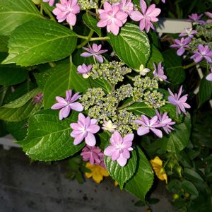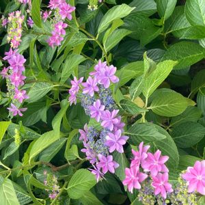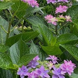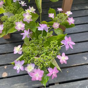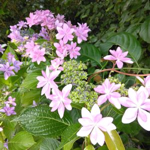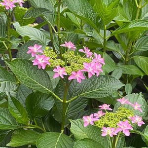 ピンクの紫陽花と山紫陽花が咲きました🩷 雨上がりのせいかピンク色がとても綺麗です❣️