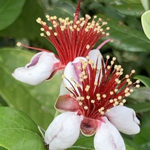 こんにちは☁️ 今日の朝、いつの間にかフェイジョア🩷💚の花が咲いていてびっくり‼️しました。 毎日のようにまだかなぁーと見守っていたのに‥‥ ここ2、3日のうちに咲いたのかなぁ〜 とっても可愛いお花です😊 今日の通勤途中pic