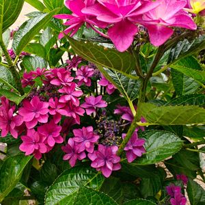 今日のお花「あじさい」.。.:*♡ ガクアジサイ ダンスパーティー 周りを囲んで咲いてるのはガク🥰 真ん中のつぶつぶがお花😍 お花も咲いてるよ〜💕 可愛い〜〜〜(๑♡∀♡๑)。:°ஐ..♡*