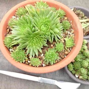 スッキリ✨ 昨日までとは別人の顔です(笑 ジョビバルバはやっぱり蒸れてきたので出勤前に整理しました。 外した子株が50~60個、そのボリュームと同じくらいの枯葉や蒸れ死仔株がお皿に一杯…。 真ん中もバラすべきか…?