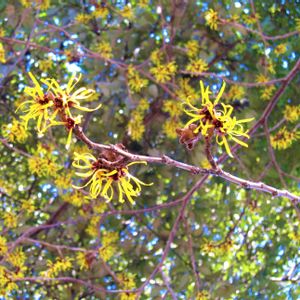 マンサク 早春に「まず咲く」がなまったという説と 多数の花が豊作に通じることから「万年豊作」に 由来する説がある 日本固有種のマンサクと中国原産の シナマンサクとの交配種が 数多くつくられている マンサク アーノルド・プロミス 花付きよく発色の良い濃い黄色