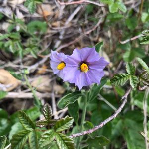3週間ぶりに行きつけのAlmaden parkのトレイルへ。新しい花が咲き始めました。ナスに似ていると思った紫の花。やはりナス属で、Bluewitch nightshadeという当地原産の植物でした。熟すと紫になる小さいナス様の実がなるらしいですが、その時分に探せるか自信なし。学名 Solanum umbelliferum