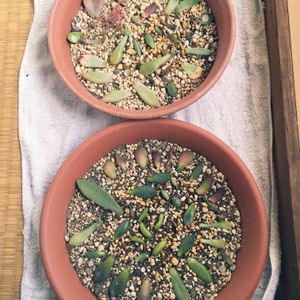 おはようございます✨ 葉挿しの多肉さん達、芽や根は出ていますが、全然大きくなりません😭 何かコツでもあるのでしょうか? ありましたら、教えて頂けたらと思います🙇⤵︎⤵︎💦 それでは、今日も1日頑張ろう💪✨
