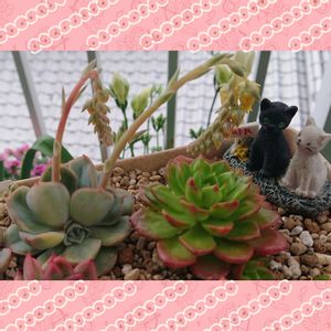 おはようございます この数日バタバタしてて いつもUPできず😂… 久しぶり〜 お空も久しぶりの☀️ ちょっと暑い!? マイメロハウス(リメ鉢)完成♡ 屋上にパラソル⛱が立ってる イメージで多肉ちゃんを探し キウイちゃんをゲット♡ これから木立になってもらう予定だが 夏越しできるか… ネコちゃんが🐱バルコニー覗いてる ハム🐹ちゃんが外の階段登ってる 分かるかな?ヽ(*´∀`) 🏷錦の日 🏷毎月24日は錦の日