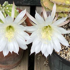🌵サボテンと多肉植物🌵第1弾 この世の美を全てギュッと凝縮した ような美しさ! 薄っすらとピンクがかった花びらは 正に美の結晶。ことばがありません! ブラジル南部からアルゼンチン原産。 サボテン科エキノプシス属の多肉植物