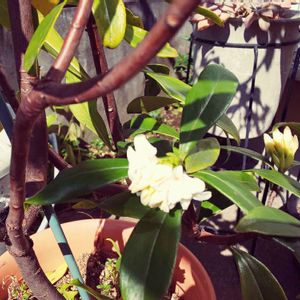 ジンチョゲ わが家の小さな庭にも春が来ました、まだか数えるていどですがいい匂いがしています、 鼻を押しつけて匂いを嗅いでみました、んーたまらない。