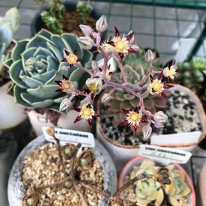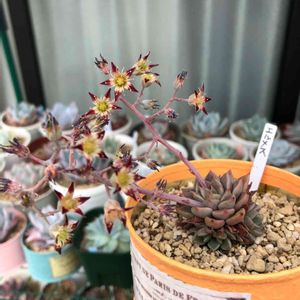 エルメスさん💕 写真を欲張って入れたから かえってごちゃごちゃしたかも💦💦 だってね お子ちゃまからも花弁が出てるのも可愛いし💕 ぷくぷくの葉っぱも見てほしいし💕 花弁も紫で可愛いの💕 真夏の直射日光に当たっても全然姿を変えませんでした😊 そのせいか 葉っぱが (表現力が乏しいですけど)がっちり固い感じです。 真夏がいい感じで 全体が下葉のような色してました❤️ 💚購入は去年の4月で ちょうど 1年💚 ちなみに 子株も育てているのですが (購入時に付いてた子を切り離した子) 大きさはこれより大きく でも 葉っぱが 少しゆるいです😅💦 すぐ取れそう❓🤣 夏をハードに超えさせて 子株もこの株のように雄々しい感じにしてあげたいです💕💕