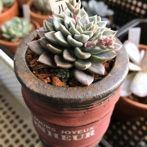 名付けがよく分からないシリーズ。何をもってこの名前なのか。商標は大丈夫なのか。少なくとも皮製品ではないから問題ないのか。貧相かつブランドには全く興味がないわたしは名前買いではない。 端整に規則正しく葉が折り重なりながら成長して、成長点付近は淡い緑のエメラルドグリーン色をしている。実は子持ちなのだが、形が崩れてない。 元気いっぱい育っており、土の表面から太いピンク色をした根が出るほど根はりが良い。相当強そう。ただ、初心者なので、もしかしたら土が合ってなくて悲鳴を上げているのかしら。 多肉愛をもって要観察ですねえ。 それはそうと、lierは大人気ですね。 国産品もがんばれー。