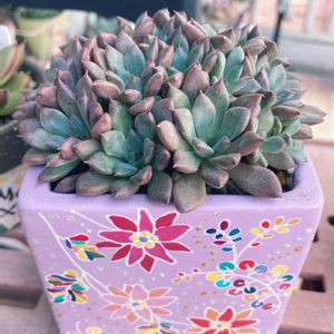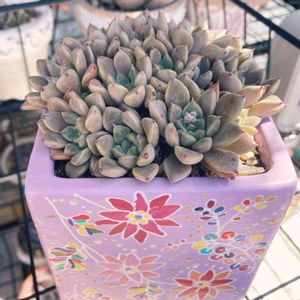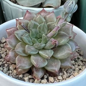 毎日のように夕方雷⚡️と雨☔️。今日は暴風付きの土砂降りでびっしょりの鉢が沢山💦今年は蒸れより焦げが目立つのでこまめに水遣りしてるのですが流石に蒸れるかな⁈扇風機の出番です🌀 この子も今の時期可愛くなるので目立ちますね💕良く子吹いてくれるけど沢山焦げたので外葉取られてなかなか大きい株になりません(*'ェ'*)💦手前の赤い子はこぼれた紅稚児です…一緒になって赤いです✨