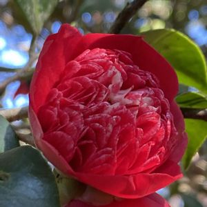 「椿卜半錦」 花びらがぎっしり詰まった真っ赤な椿が咲き出しました🌸