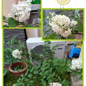 ピラミッドアジサイ、枝先に手のひらサイズで咲いてるのだけど…… 重たくて、垂れ下がってます😱 花が終わったら切り戻してもう少しコンパクトにして、枝数を増やしてお花が沢山咲くように頑張ってみます☝️ エアコンはほとんど使ってないので、室外機の風はあたってません☺️