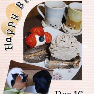 昨日はBIRTHDAYでした🩷✨️ (近頃番外編が多くて😅) 色々あり働いてないし年末も近いし自分の誕生日はおめでとうの言葉だけで何も無くても良いと思ってたけど旦那さん仕事帰りに買ってきてくれてて🍰🥰 冷蔵庫に入ってたの発見して『わ!!なんか可愛いの入ってる〜🤩!』って思わず🤭 いちごタルトとモンブランタルト🍰 2つずつあるので今日も頂きます🥰 ありがとう🙏🏻🩷 👩病気発覚🧒手術、長期休養になったり、私の長期メンタル不調だったり、しんどい辛い年だったけど煽ること無く寄り添ってくれた旦那さんには感謝しかない🙏🏻🫧 入院前後の4ヶ月、こんなに一緒に居ることは定年まで無いだろうけど病みつつも平和で乗り切れました🤗 (1人時間が少なくて時々モヤってたのは内緒🤭) 今年は安心してもらえてるように、笑顔が増えるように少しずつでも前進出来るようになんとか頑張りたい✊🏻 モルモットのむぎちゃんとくぅちゃん🐹🐹🩷 むぎちゃんは6歳半高齢で少し後ろ足が弱ってきたけど食欲旺盛🥕🫑🥦🥒🥬🌽🍎🍊 台所に経つと野菜要求の圧が凄い😂 冷蔵庫前に走っていき、ずっとまとわり付いてきて😍🩷 長生きして欲しいな🌿